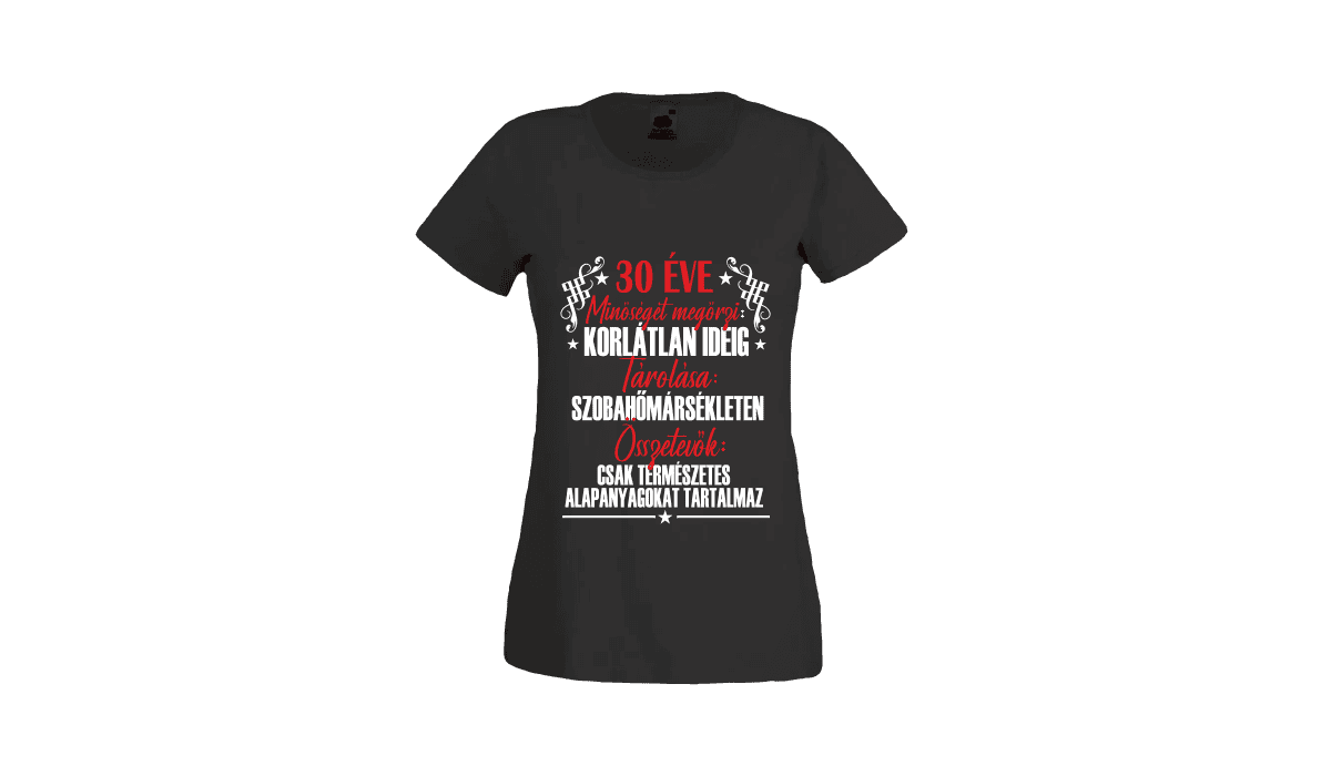 30 Éve minőséget megőrzi… – női fekete póló termékkép