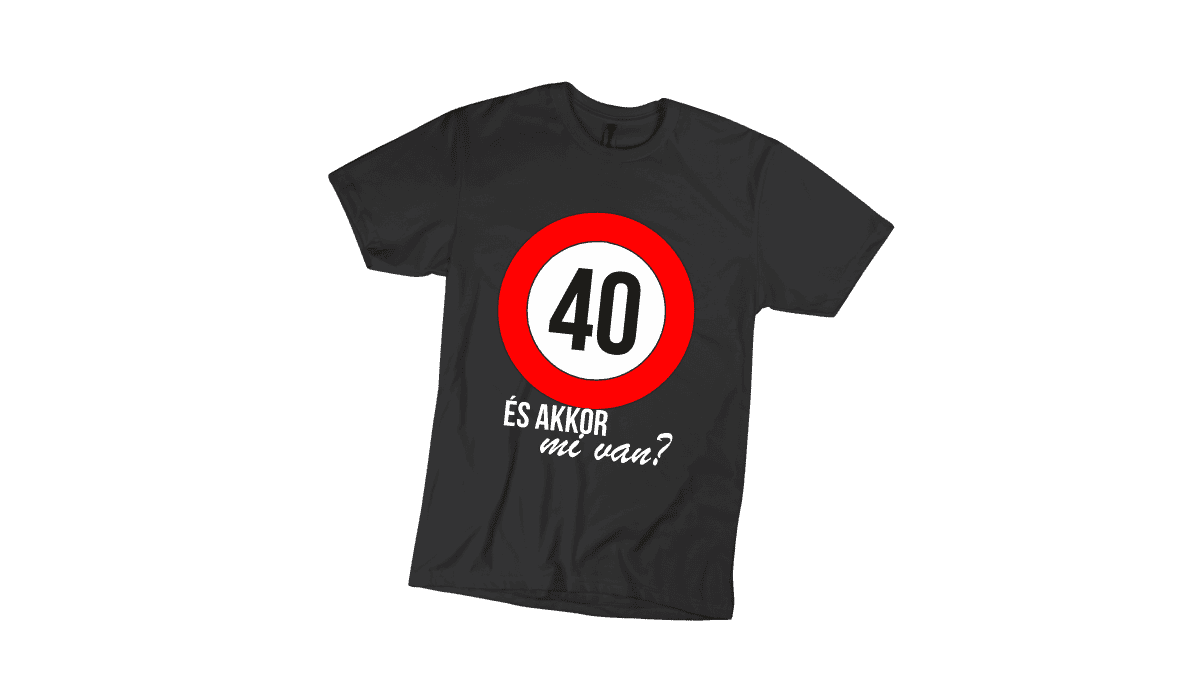 40 És akkor mi van? – férfi fekete póló termékkép. Tökéletes egyedi ajándék bármely alkalomra.