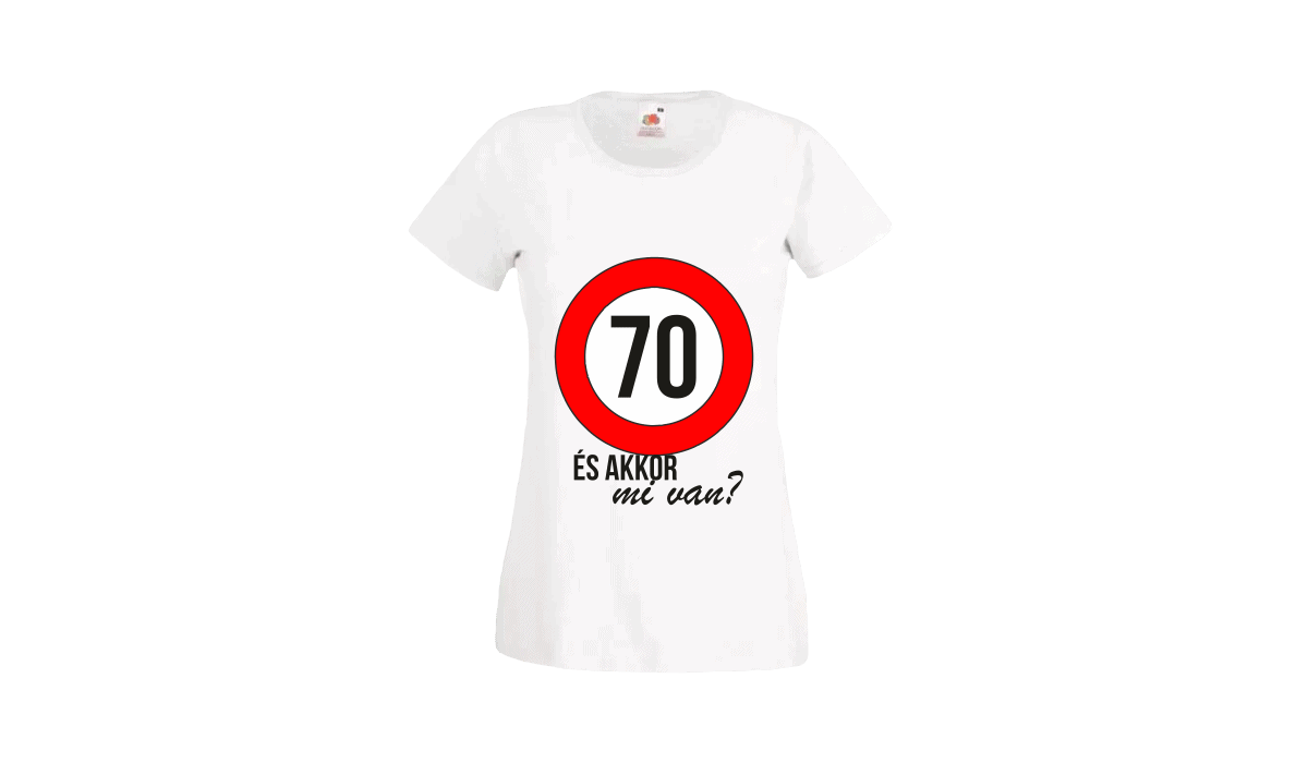 70 És akkor mi van? – női fehér póló termékkép. Tökéletes egyedi ajándék bármely alkalomra.