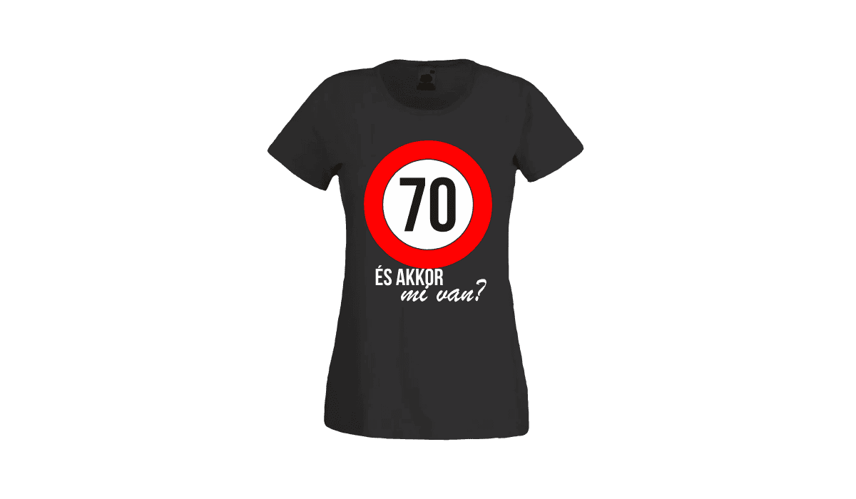 70 És akkor mi van? – női fekete póló termékkép. Tökéletes egyedi ajándék bármely alkalomra.