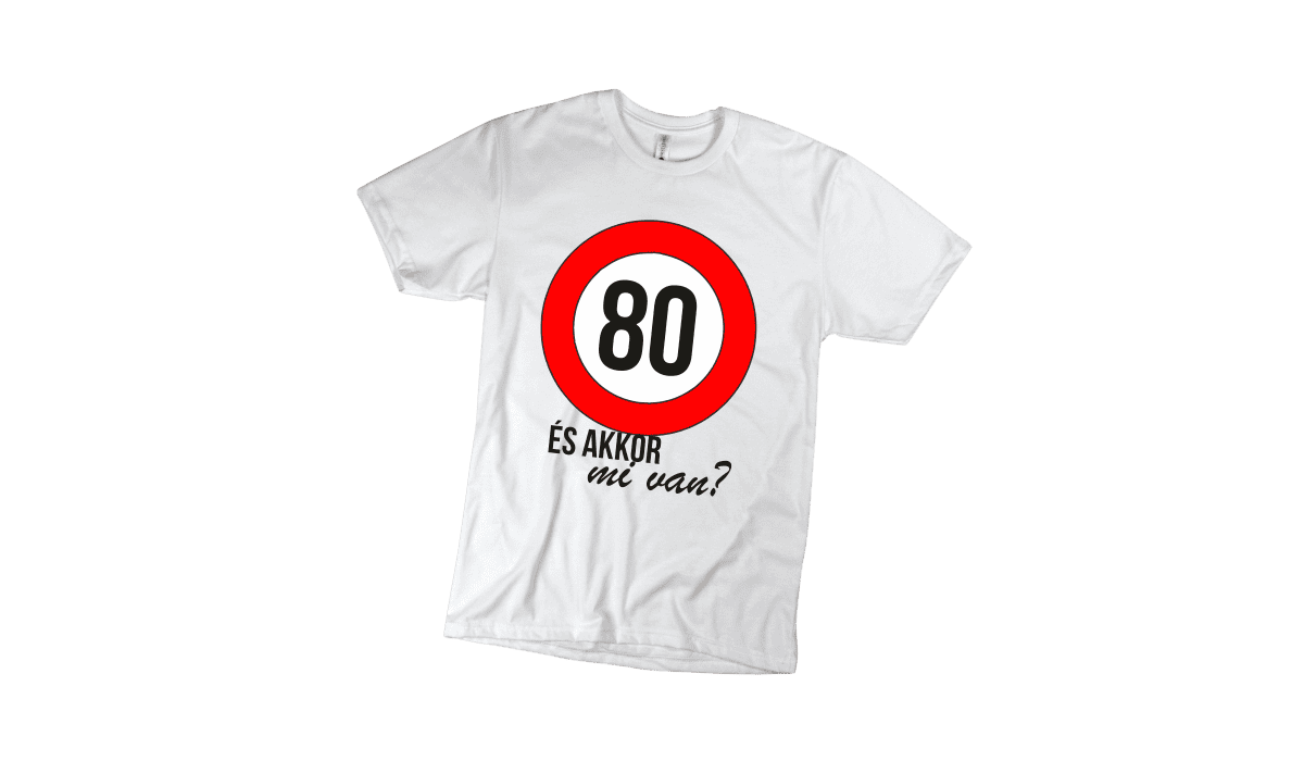 80 És akkor mi van? – férfi fehér póló termékkép. Tökéletes egyedi ajándék bármely alkalomra.
