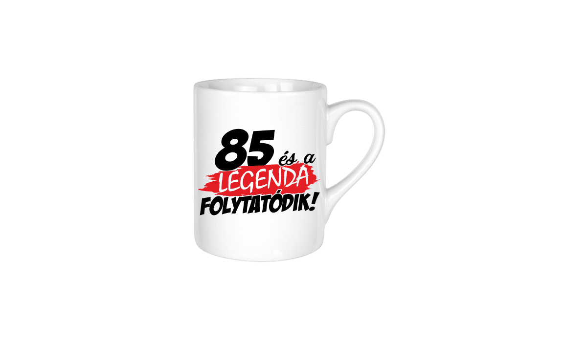 85 és a legenda folytatódik – kerámia bögre termékkép -Vicces bögre ajándék ötlet: Egyedi minta és felirat alapján készült, ami tökéletes ajándékként szolgál.