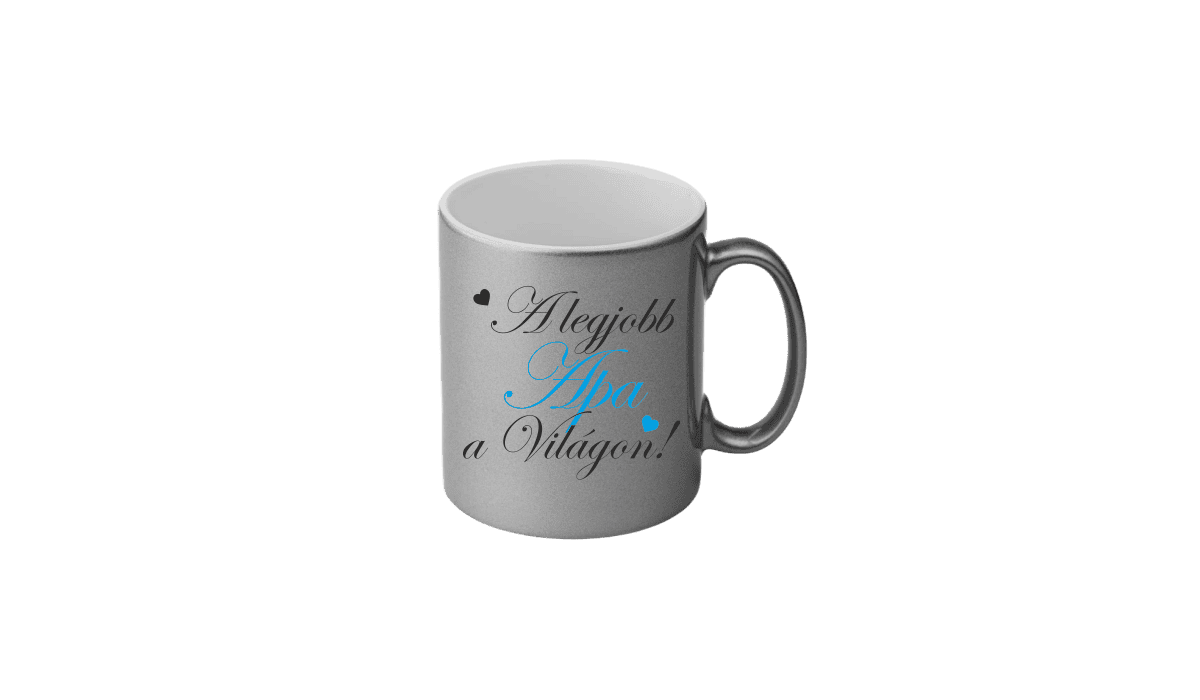 A legjobb apa a világon (ezüst) – kerámia bögre termékkép. Vicces bögre ajándék ötlet: Egyedi minta és felirat alapján készült, ami tökéletes ajándékként szolgál.