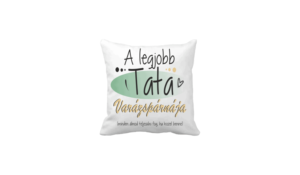 A legjobb tata varázspárnája… – vicces poénos párna termékkép. Egyedi, fényképes minta és felirat alapján készült. Állatos,vicces,poénos,fánkos,emoji,anyának,apának, és pénzes párnák nagy választéka. Bármely alkalomra tökéletes és különleges meglepetés.