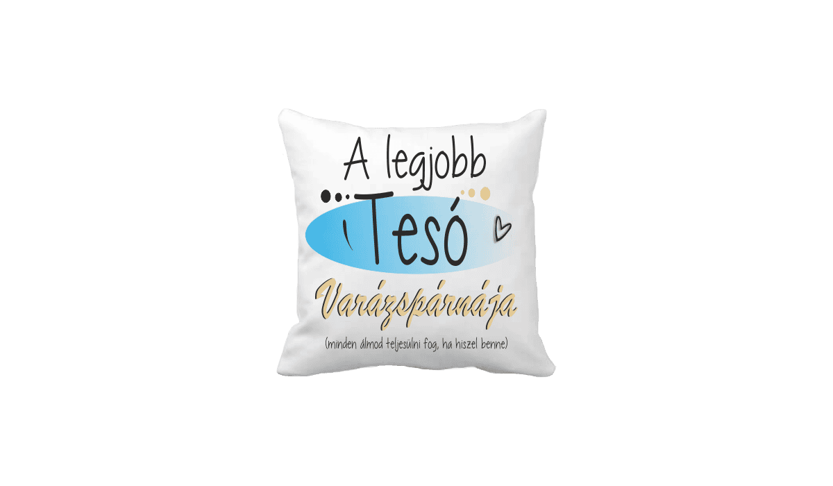 A legjobb tesó varázspárnája…(kék) – vicces poénos párna termékkép. Egyedi, fényképes minta és felirat alapján készült. Állatos,vicces,poénos,fánkos,emoji,anyának,apának, és pénzes párnák nagy választéka. Bármely alkalomra tökéletes és különleges meglepetés.