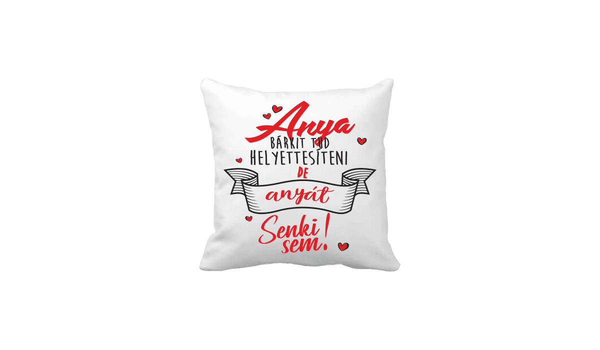 Anya bárkit tud helyettesíteni… – vicces poénos párna termékkép. Egyedi, fényképes minta és felirat alapján készült. Állatos,vicces,poénos,fánkos,anyának,apának, és pénzes párnák nagy választéka. Bármely alkalomra tökéletes és különleges meglepetés lehet.