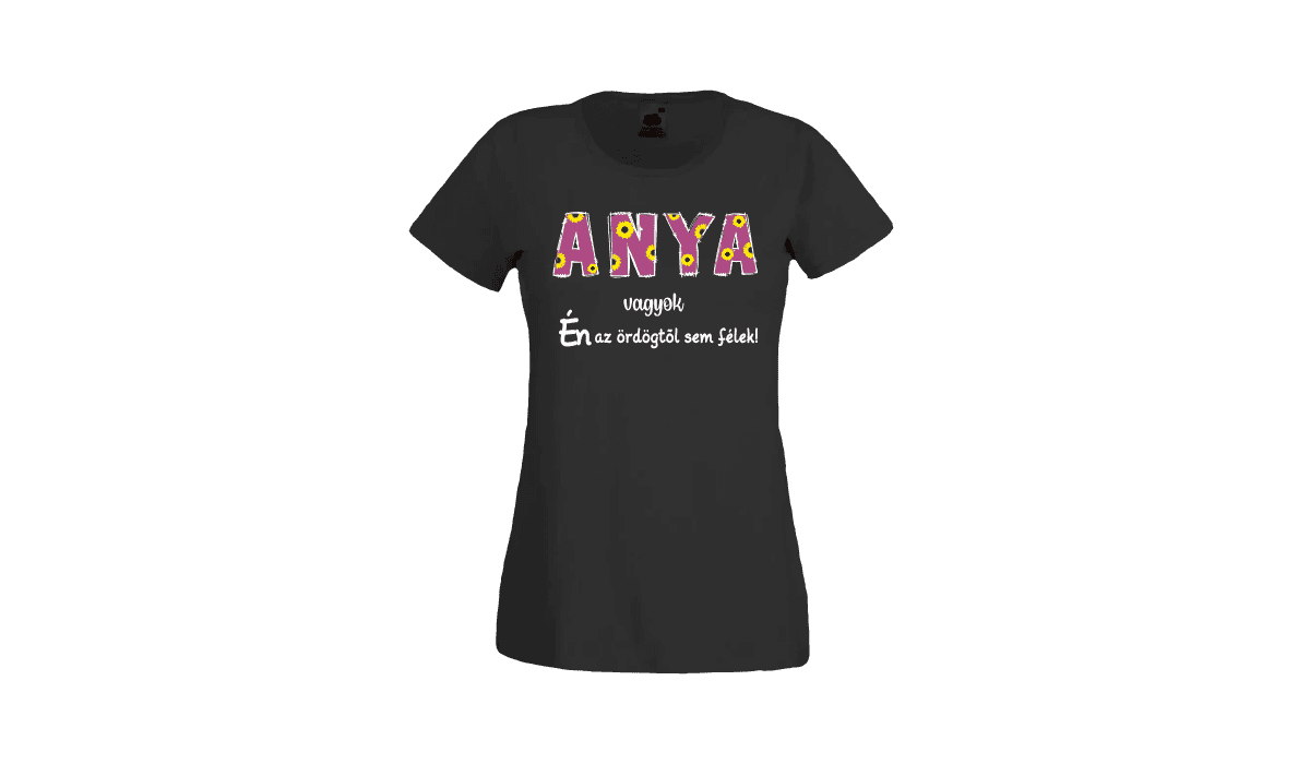 Anya vagyok…(virág) – női fekete póló termékként. Tökéletes egyedi ajándék bármely alkalomra.