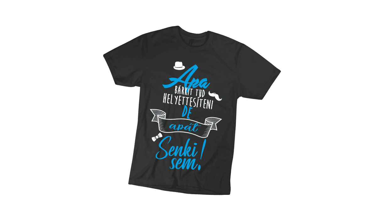 Apa bárkit tud helyettesíteni… – apának, fekete férfi póló termékkép. Tökéletes egyedi ajándék bármely alkalomra.