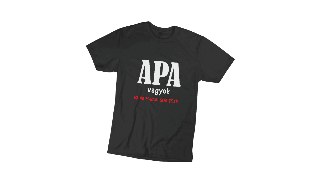 Apa vagyok…(fehér) – fekete póló termékként. Tökéletes egyedi ajándék bármely alkalomra.