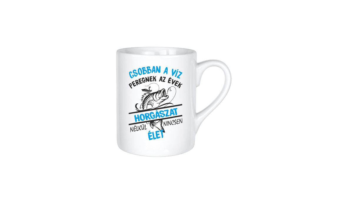 Horgászat nélkül nincsen élet – kerámia bögre termékkép. Vicces bögre ajándék ötlet: Egyedi minta és felirat alapján készült, ami tökéletes ajándékként szolgál.