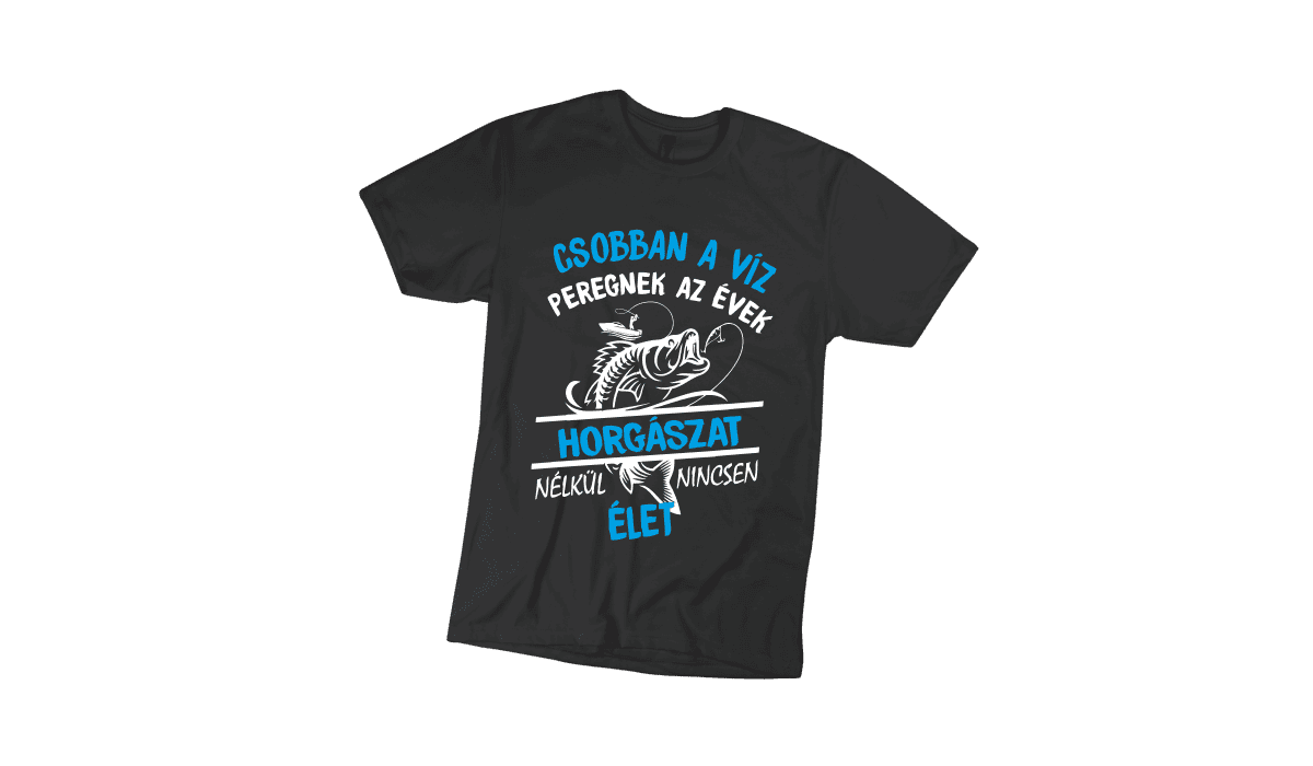 Horgászat nélkül nincsen élet – férfi fekete póló termékkép. Tökéletes egyedi ajándék bármely alkalomra.