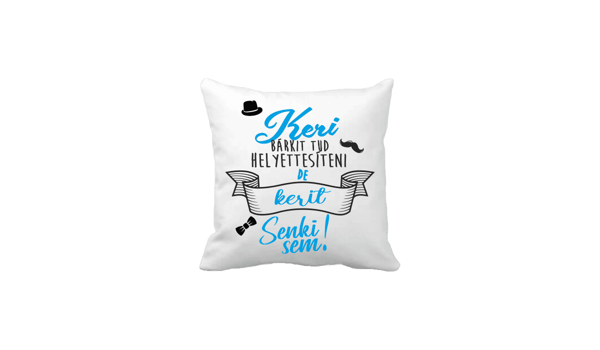 Keri bárkit tud helyettesíteni…(kék) – vicces poénos párna termékkép. Egyedi, fényképes minta és felirat alapján készült. Állatos,vicces,poénos,fánkos,anyának,apának, és pénzes párnák nagy választéka. Bármely alkalomra tökéletes és különleges meglepetés lehet.