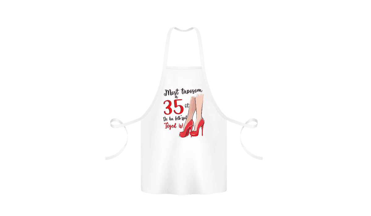 Most taposom a 35-at… – kötény termékkép. Kötény ajándék ötlet: Vicces poénos kötény anyának, egyedi ajándék meglepetés, ami mosolyt csal az arcokra!