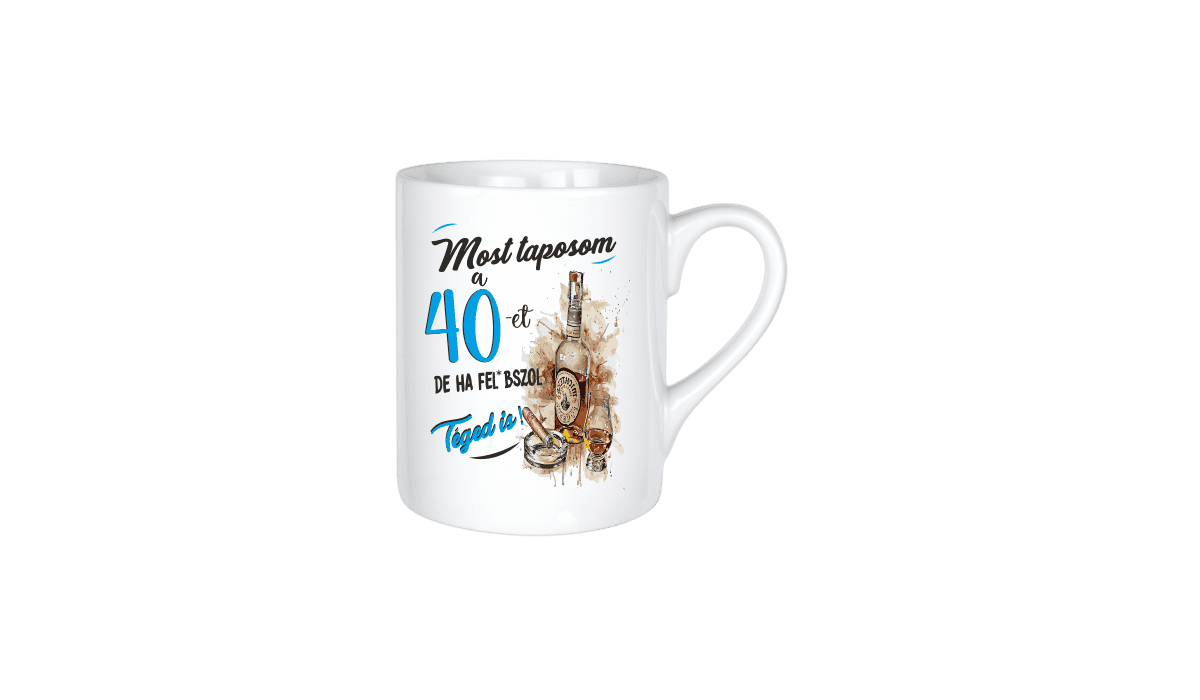 Most taposom a 40-et…(kék) – kerámia bögre termékkép. Vicces bögre ajándék ötlet: Egyedi minta és felirat alapján készült, ami tökéletes ajándékként szolgál.