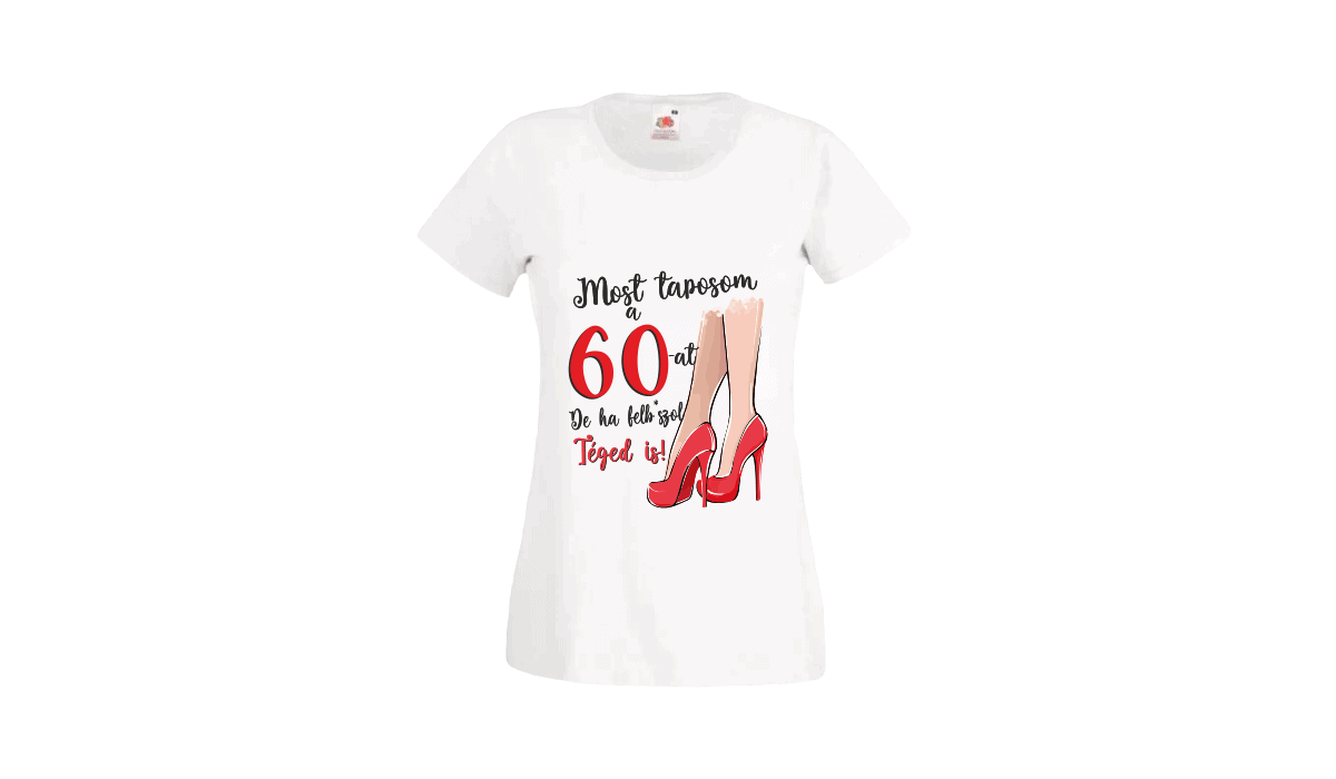 Most taposom a 60-at… – női fehér póló termékkép. Tökéletes egyedi ajándék bármely alkalomra.