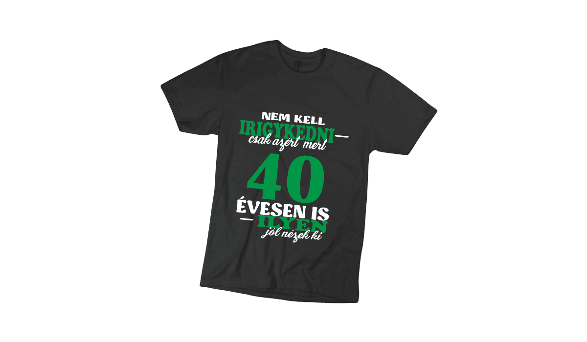 Nem kell irigykedni 40…(zöld) – férfi fekete póló. Tökéletes egyedi ajándék bármely alkalomra.