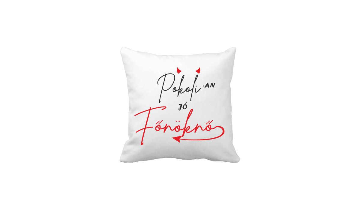 Pokolian jó főnöknő – vicces poénos párna termékkép. Egyedi, fényképes minta és felirat alapján készült. Állatos,vicces,poénos,fánkos,emoji,anyának,apának, és pénzes párnák nagy választéka. Bármely alkalomra tökéletes és különleges meglepetés.
