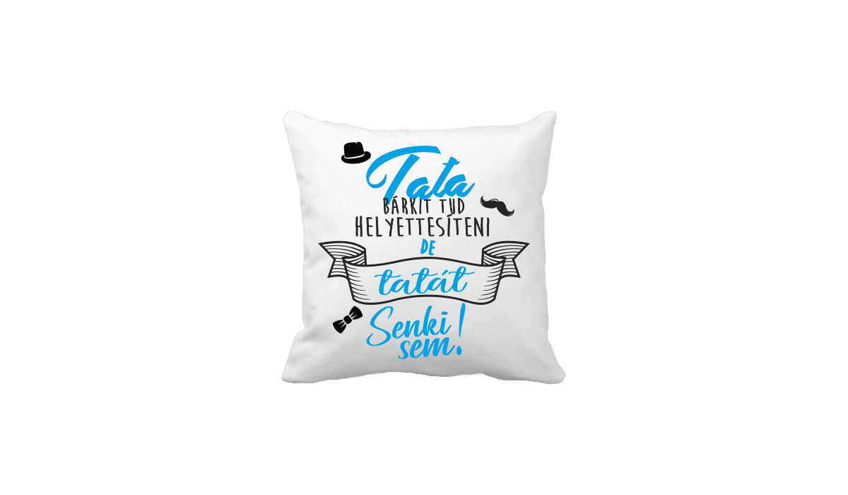 Tata bárkit tud helyettesíteni… – vicces poénos párna termékkép. Egyedi, fényképes minta és felirat alapján készült. Állatos,vicces,poénos,fánkos,anyának,apának, és pénzes párnák nagy választéka. Bármely alkalomra tökéletes és különleges meglepetés lehet.